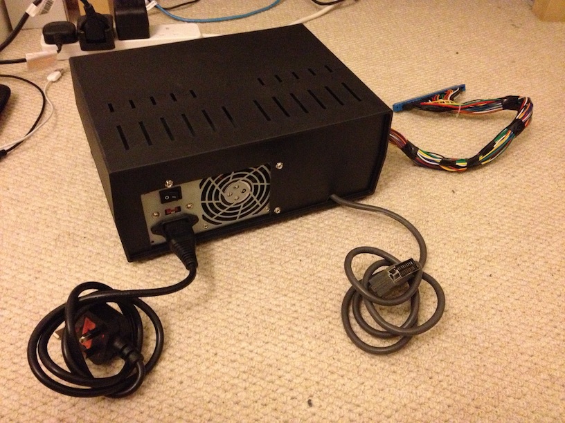 with a lot of salvaged parts (the ATX power supply, the SCART plug etc)